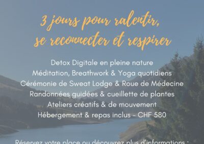 I also create bespoke retreats, designed and organized on request – in Switzerland or abroad, at the location of your choice.