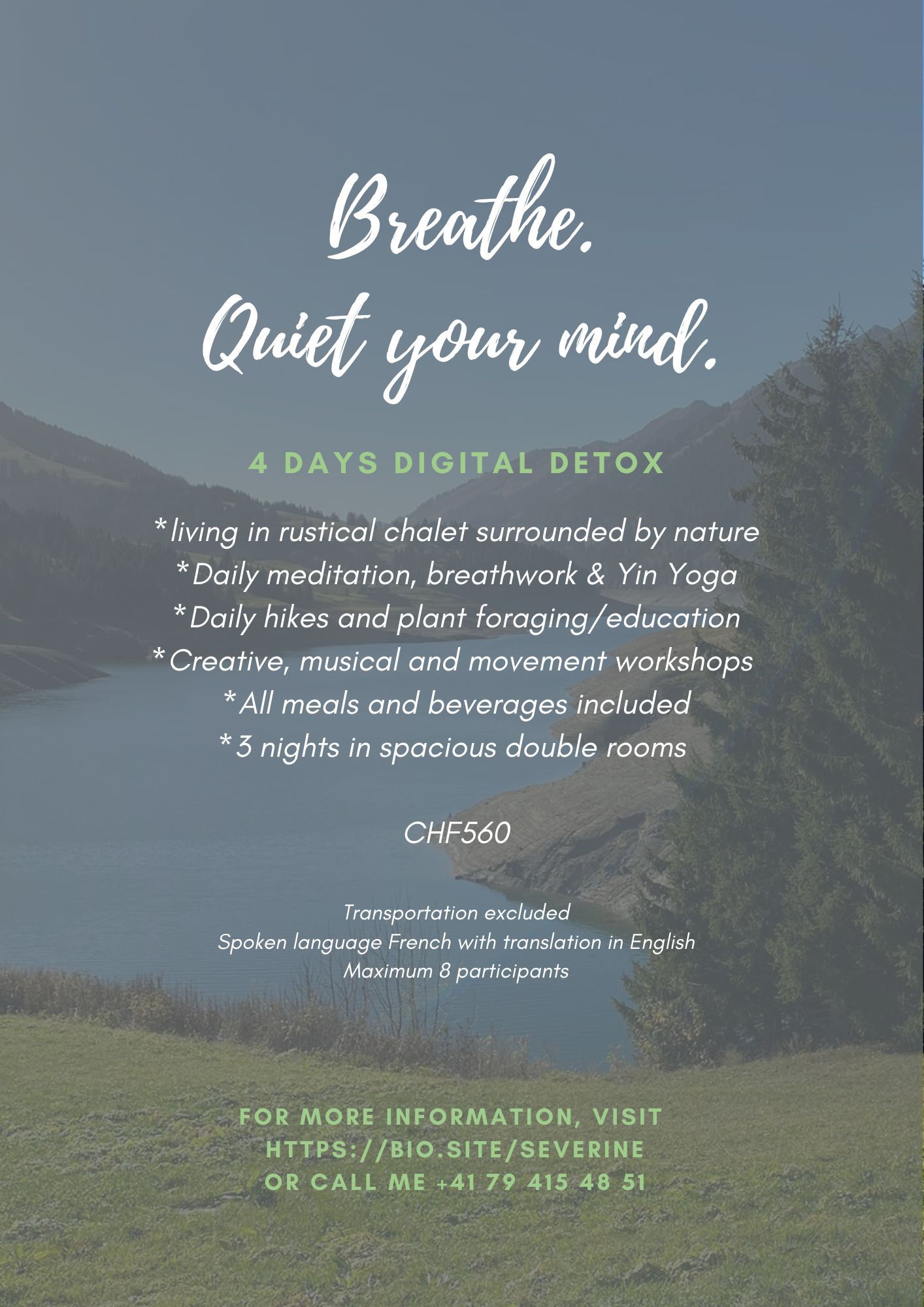 I also create bespoke retreats, designed and organized on request — in Switzerland or abroad, at the location of your choice.